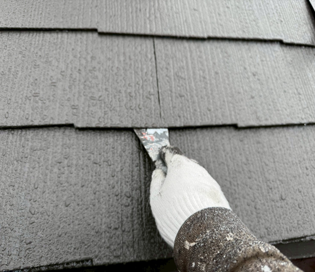 目粗しは、ケレンの程度が最も軽い状態の「ケレン4種」にあたる工程です。塗料の密着性を高めるのが主な目的で、鉄部の表面に細かな傷を付けることにより、塗料の接触面積を広げます。