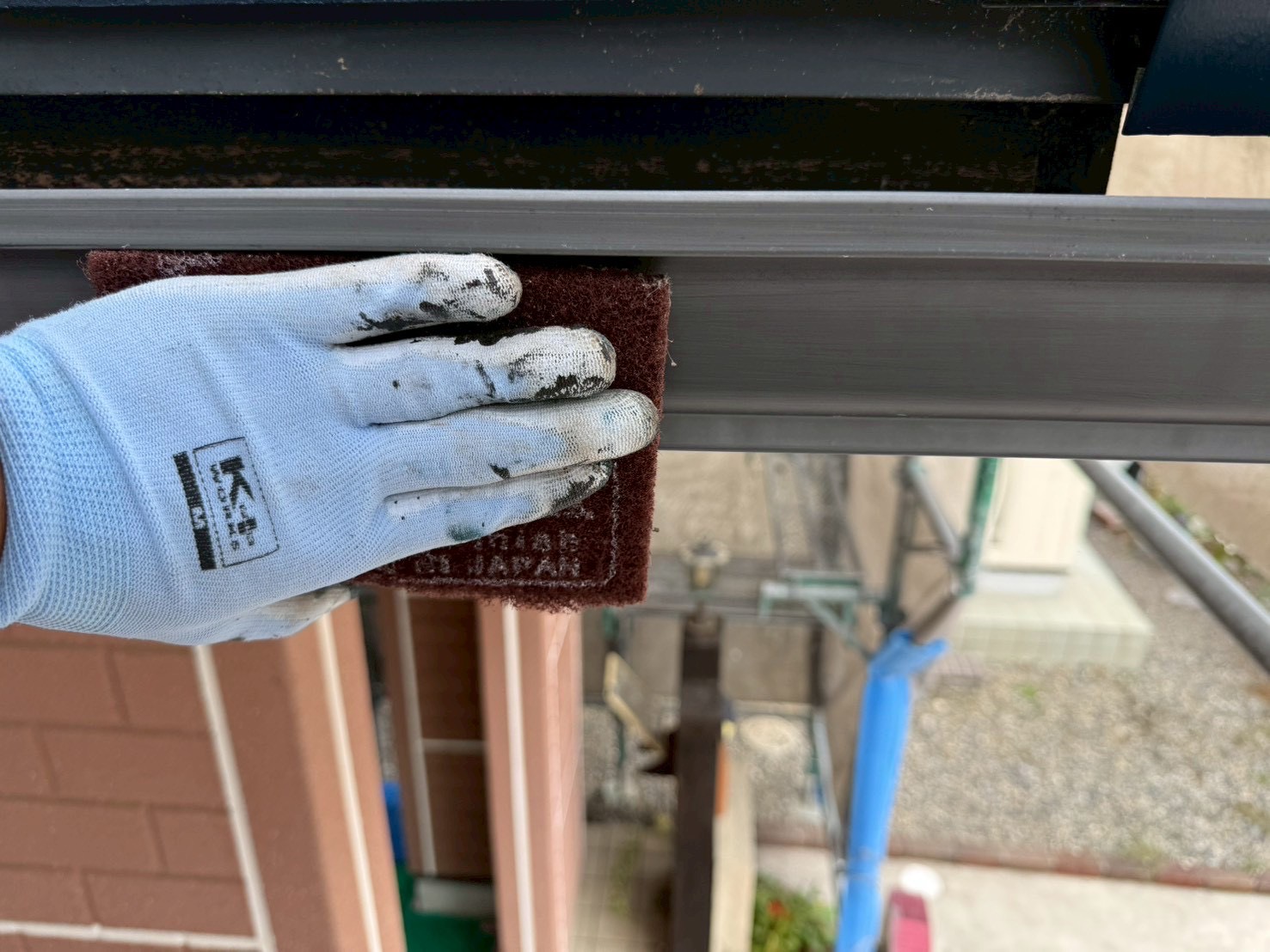 目粗しは、ケレンの程度が最も軽い状態の「ケレン4種」にあたる工程です。塗料の密着性を高めるのが主な目的で、鉄部の表面に細かな傷を付けることにより、塗料の接触面積を広げます。